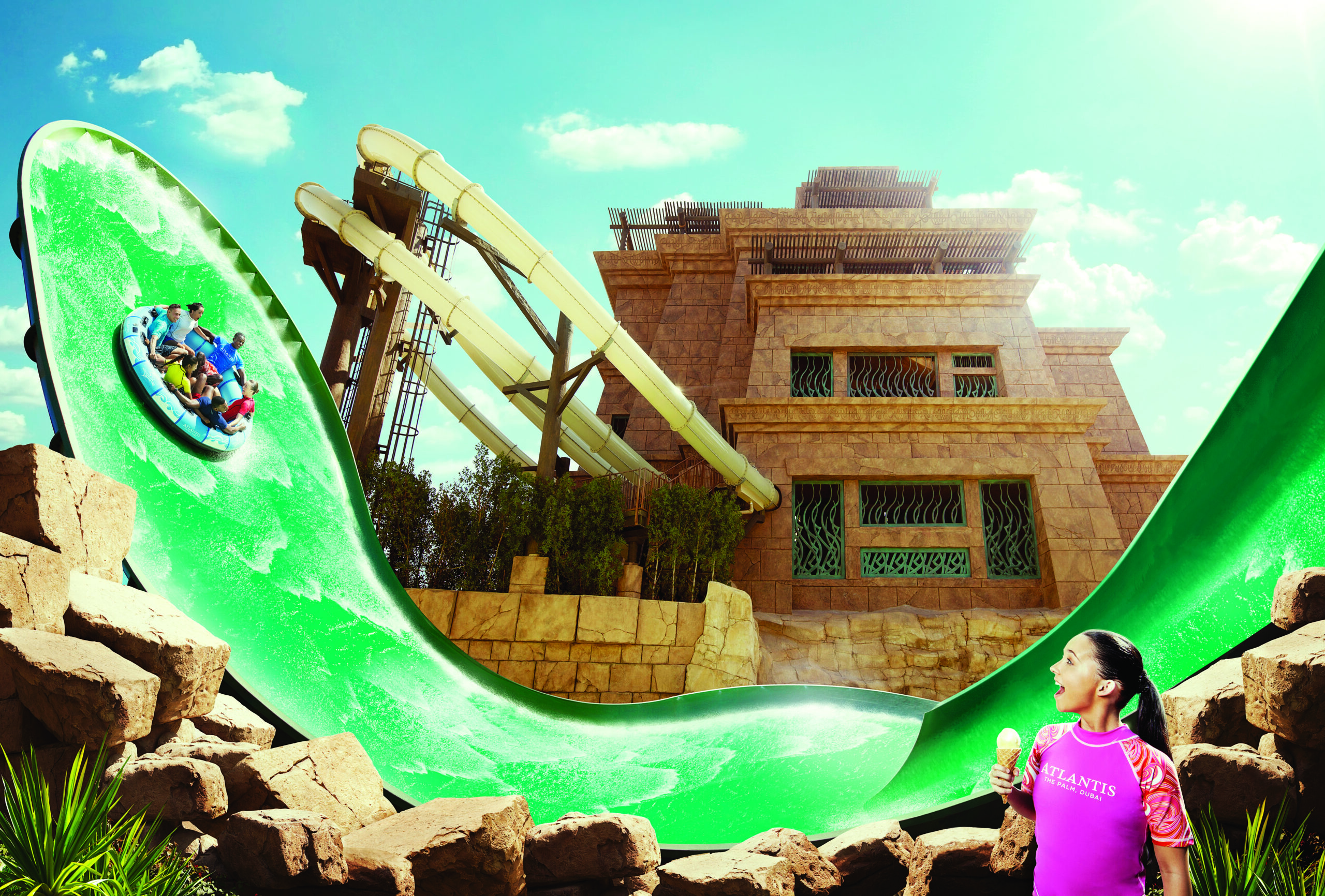 לחוויית רכבת הרים, שלושת המגלשות הללו מתריסות בכוח המשיכה וודוחפות את הגולשים בעלייה.